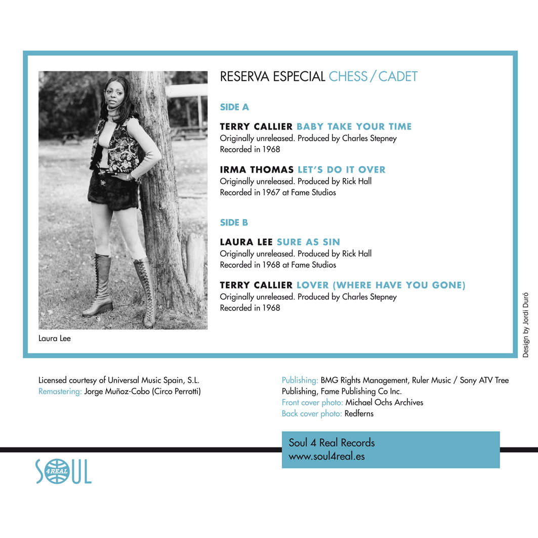 This EP features songs by Laura Lee and Irma Thomas, recorded in the late ’60s at FAME Studios and published on Chess Records, along with some of the most sophisticated productions from Cadet, represented by Terry Callier. All tracks are originally unreleased and are making their debut on 7” vinyl.